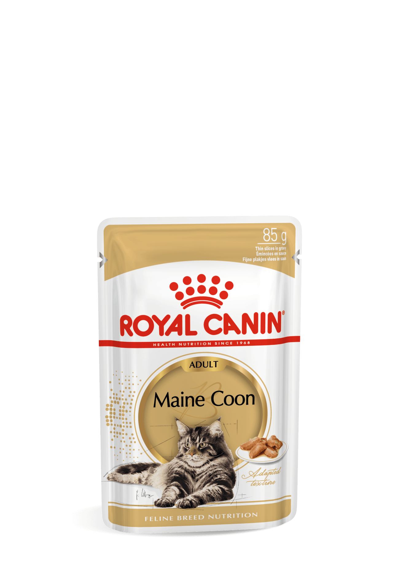 The Maine Coon’s large size and grand stature can challenge joints throughout its life. This breed specific formula with adapted texture, provides tailor-made nutrition for your Maine Coon cat, including: