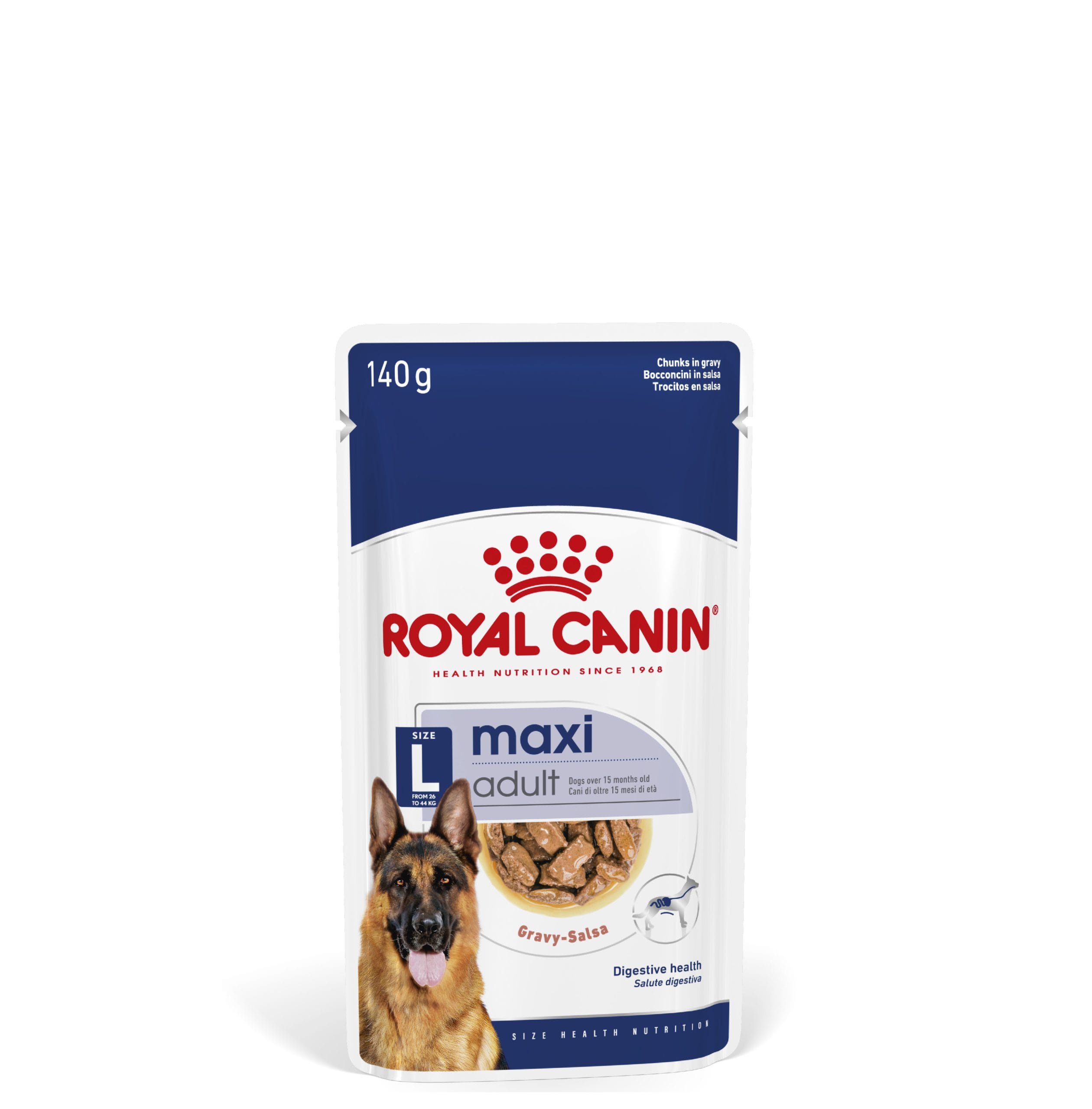 Royal Canin Maxi Adult Chunks in Gravy forms part of the Canine Size Health Nutrition range and offers the following: