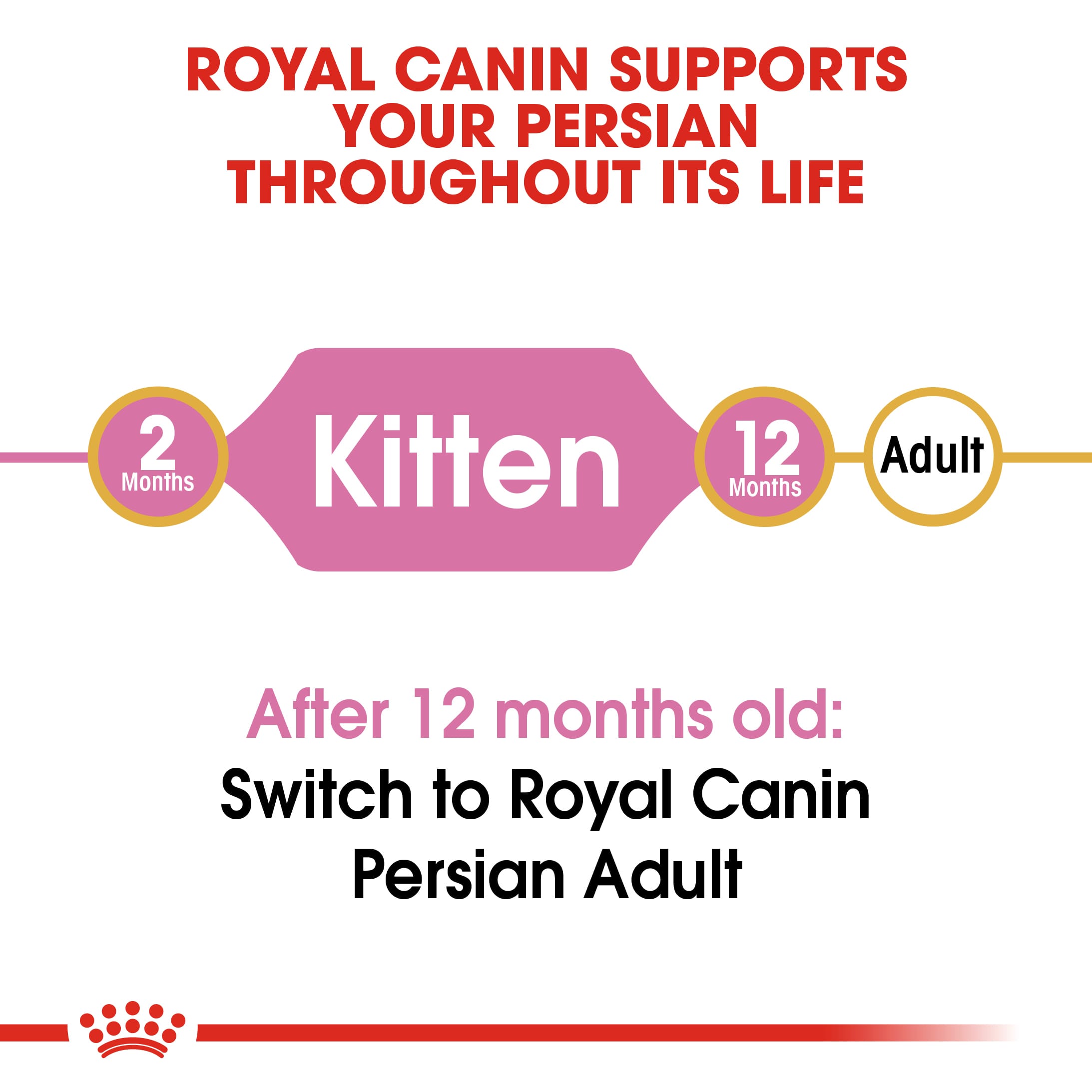 During growth, the Persian kitten develops a long, dense and silky coat, the hallmark of the breed. This breed specific formula provides tailor-made nutrition for your Persian kitten, including: