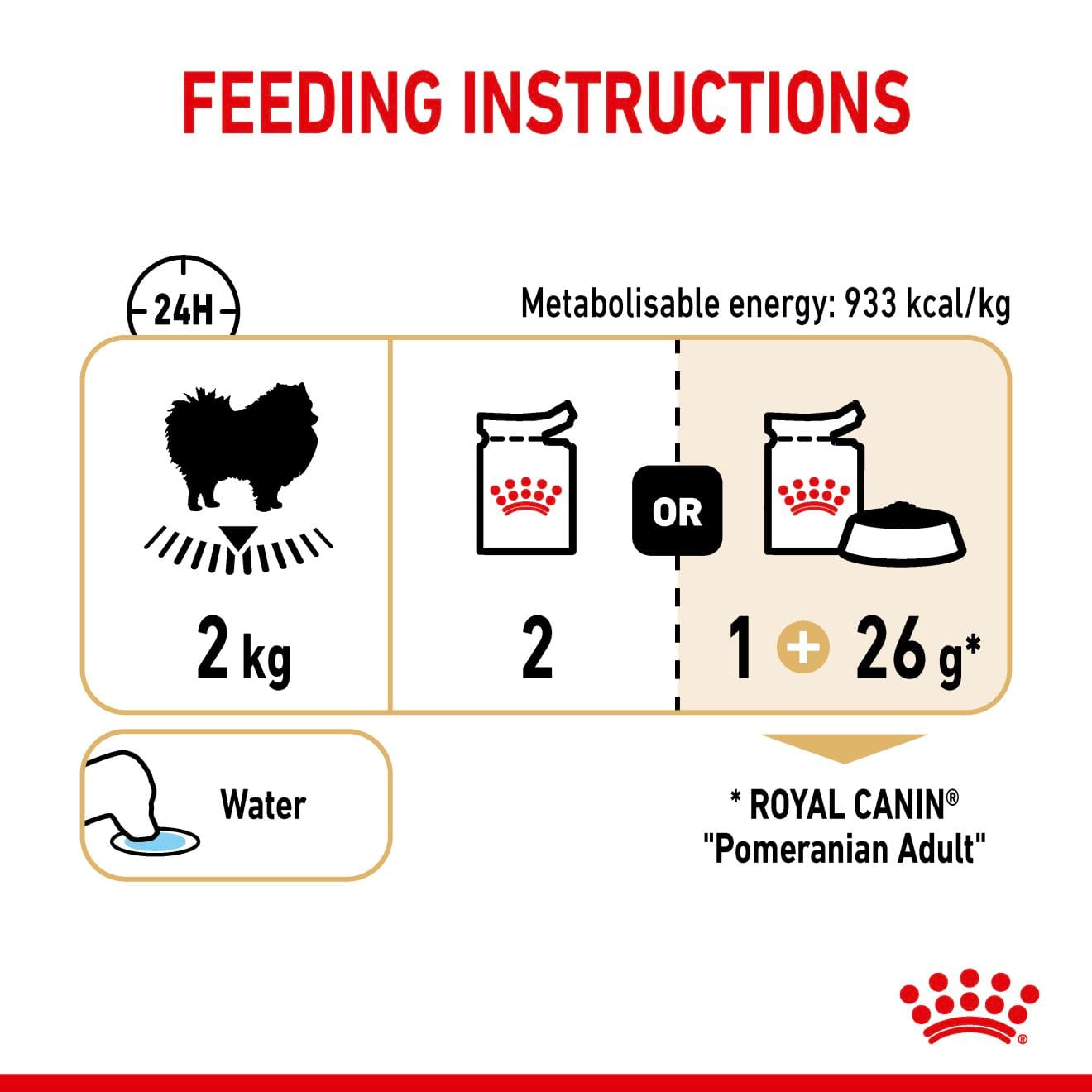 The kibble’s shape, size, texture and formula are adapted to the Pomeranian’s small jaw. This formula helps reduce tartar formation thanks to calcium chelators to support dental health.